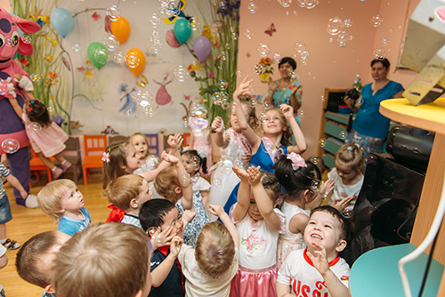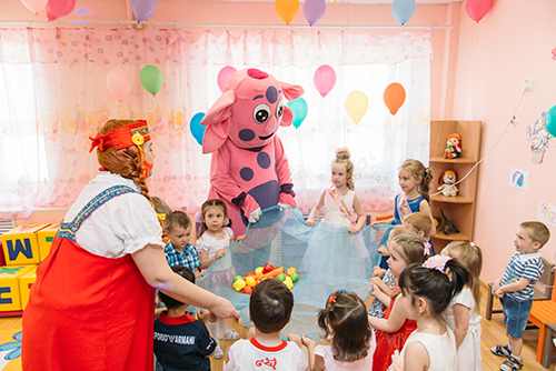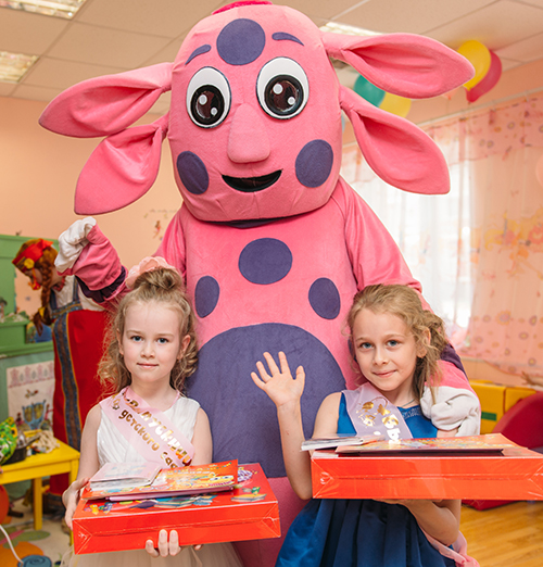 В этот же день был еще один праздник – выпускной. Выпускницы читали стихи и собирали портфели. А потом все детишки играли с ростовой куклой, милым очаровательным Лунтиком и Марьей Искусницей. Праздник завершился мини-дискотекой с фейерверком из мыльных пузырей.