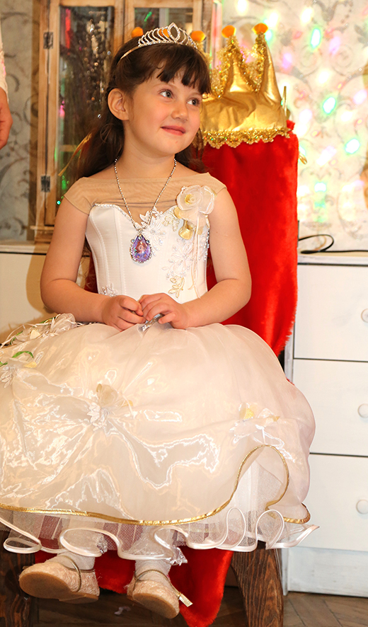 Празднование Дня рождения было организовано в стиле принцессы Софии. Зал был украшен шарами, и самым ярким был шар в человеческий детский рост «София». В поздравительной части наш театр провел «коронацию» Принцессы Кристины. Папа Король и мама Королева взяли за руки свою дочку и под звуки фанфар и чудесной песенки о принцессе подвели её к «настоящему» трону. Затем папа Король водрузил корону со сверкающими камнями на головку дочери. Были аплодисменты и поздравления.