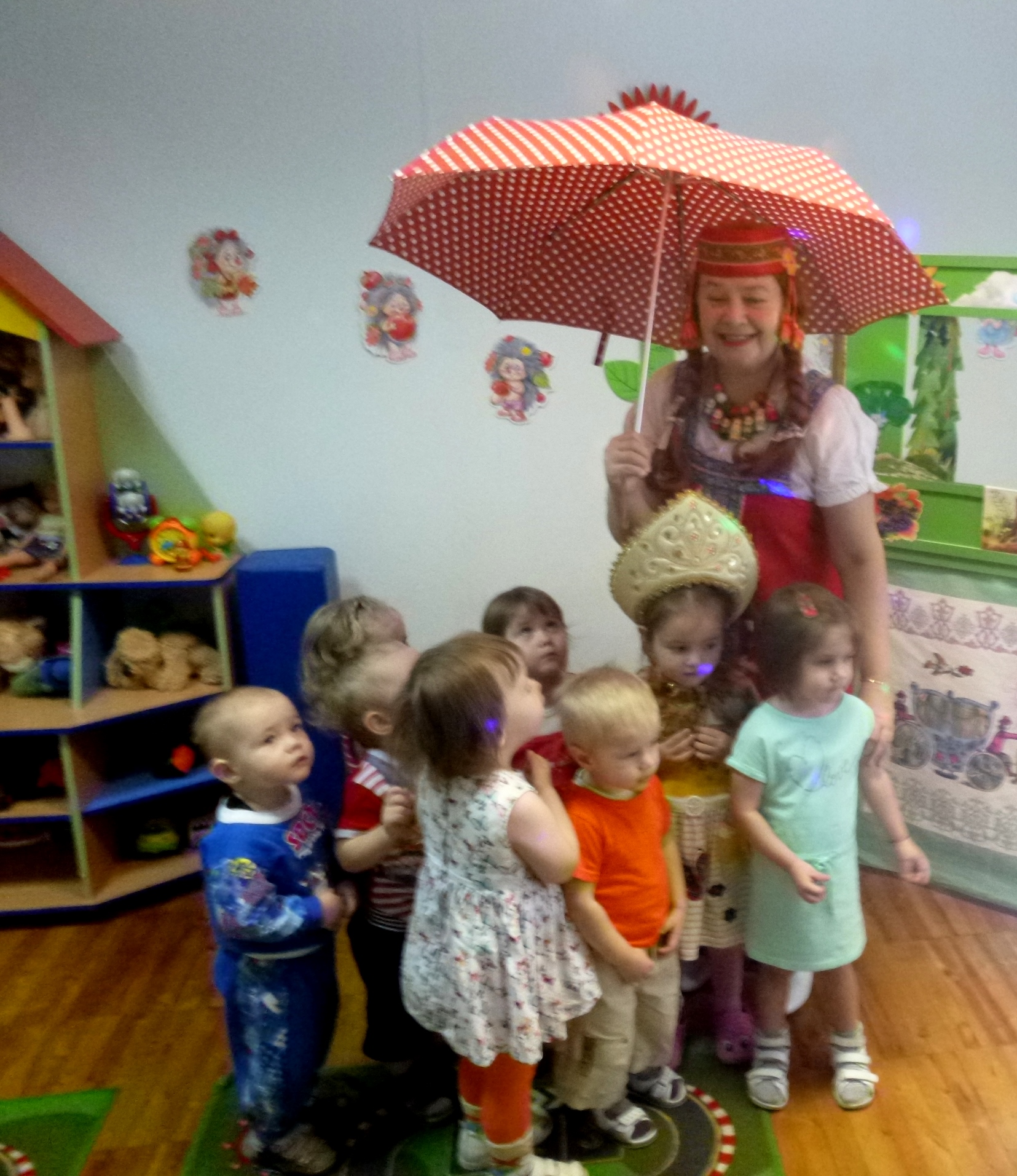 Даже малыши с пустышками, которые только что требовали «маму», умолкали и внимательно, с широко открытыми глазенками следили за Колобком, Петушком, Зайцем, Волком, Лисой, Котом.
