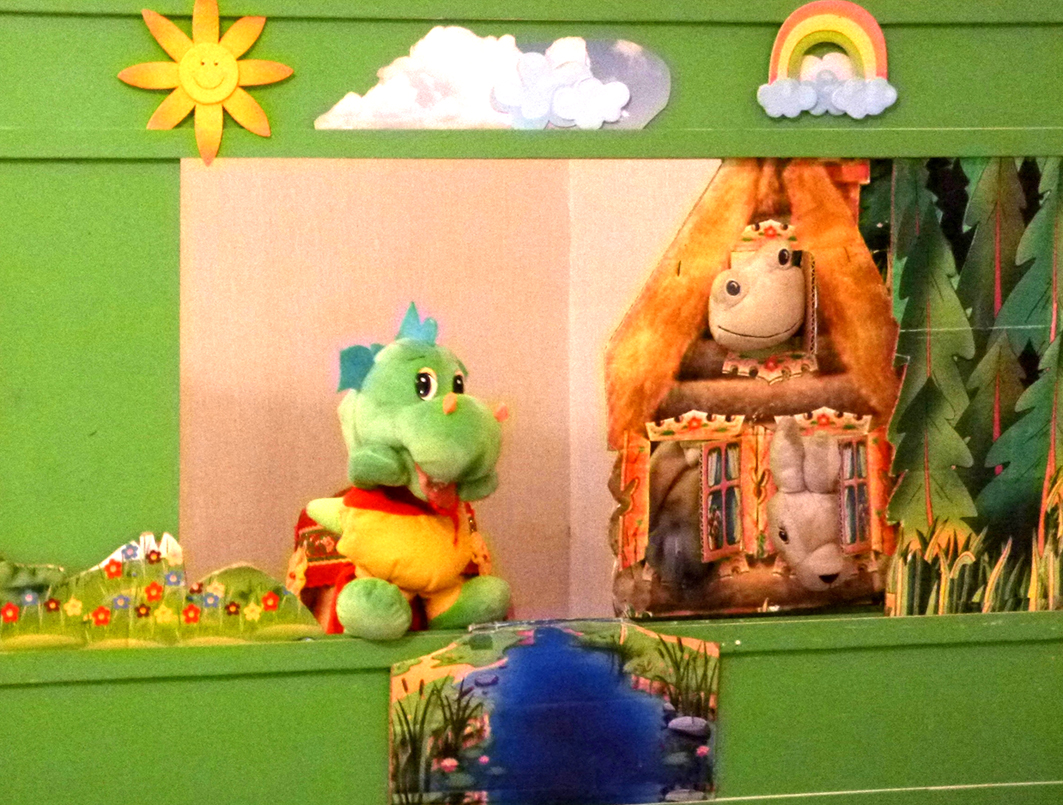 Сегодня 1 февраля «Сказка на колесах» прикатилась в детский садик «Гнездышко». Мы показывали малышам сказку «Кто спасет Теремок?». Наш сценарий по мотивам русской народной сказки «Теремок», где добрый, но сильный и смелый Дракоша спасает слабых маленьких зверят. В сюжете спектакля зверушки говорят, в том числе, о хозяйственных работах. Лягушка собирается наносить воды из запруды, Мышка замесить тесто и испечь пирожки.