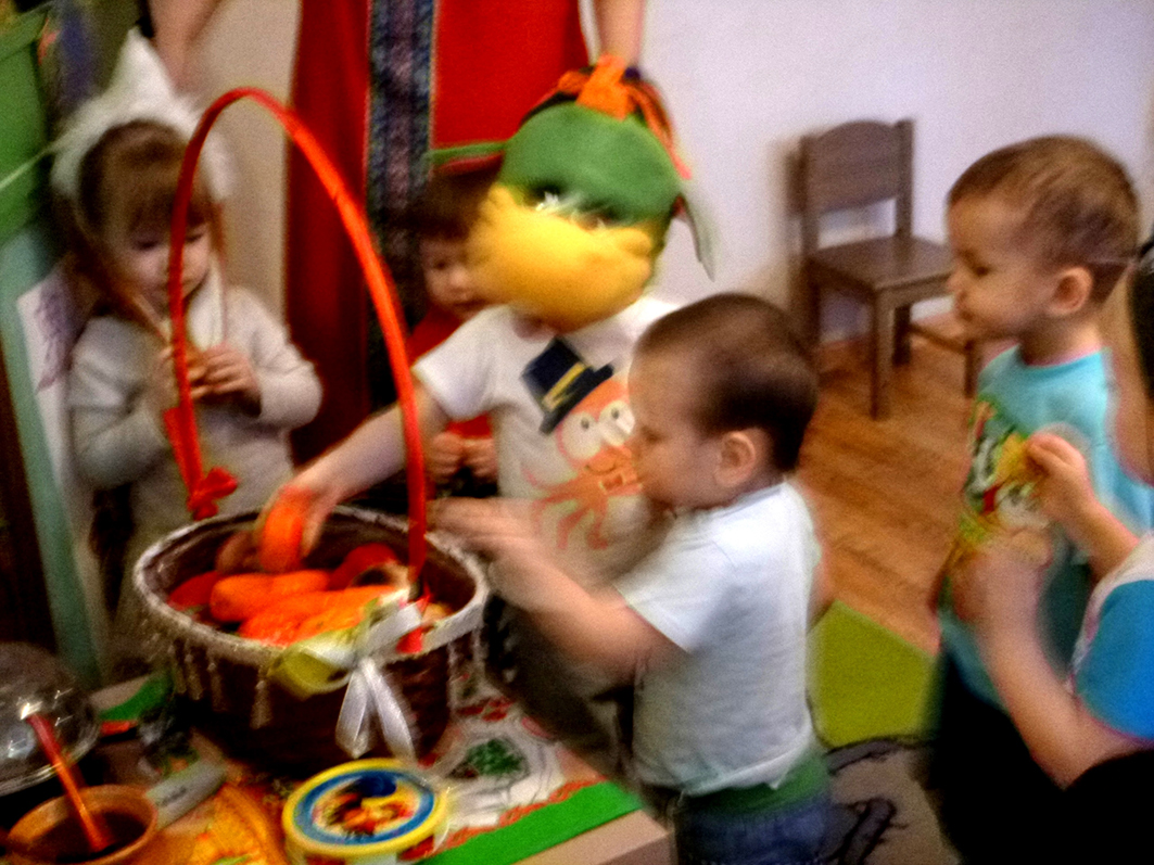 А потом водили хоровод, « заготовляли» овощи и фрукты для лесных зверей.