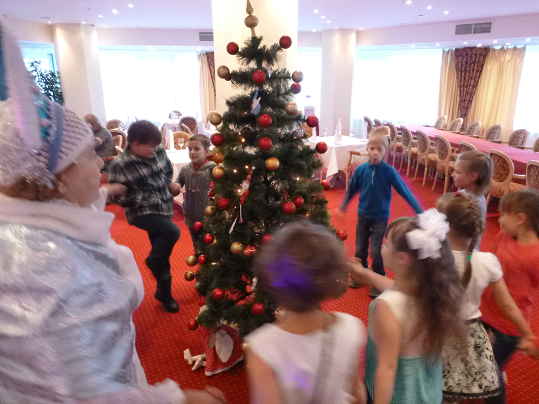 В нашем репертуаре уже есть два квеста для этой аудитории ( см. репертуар, новости). Наш коллектив создал новогодний сценарий «Как Бастинда похитила Деда Мороза» по мотивам одного из квестов и провел эту программу в чудесном, ярко декорированном зале ресторана «Онегин». Злая Волшебница обманом заманила Деда Мороза и приковала цепью к клетке, где в оригинале сказки сидел Лев. Дети в разгар игр у елки узнают из письма о коварстве Бастинды. Так «завязывается» сюжет. Не буду описывать весь сценарий. Целью школьников, на время превратившихся в Элли и ее друзей, и Бастинду, было преодолевая препятствия, освободить Деда Мороза из плена. После чего спасатели танцевали с Дедушкой вокруг елки и получали подарки.