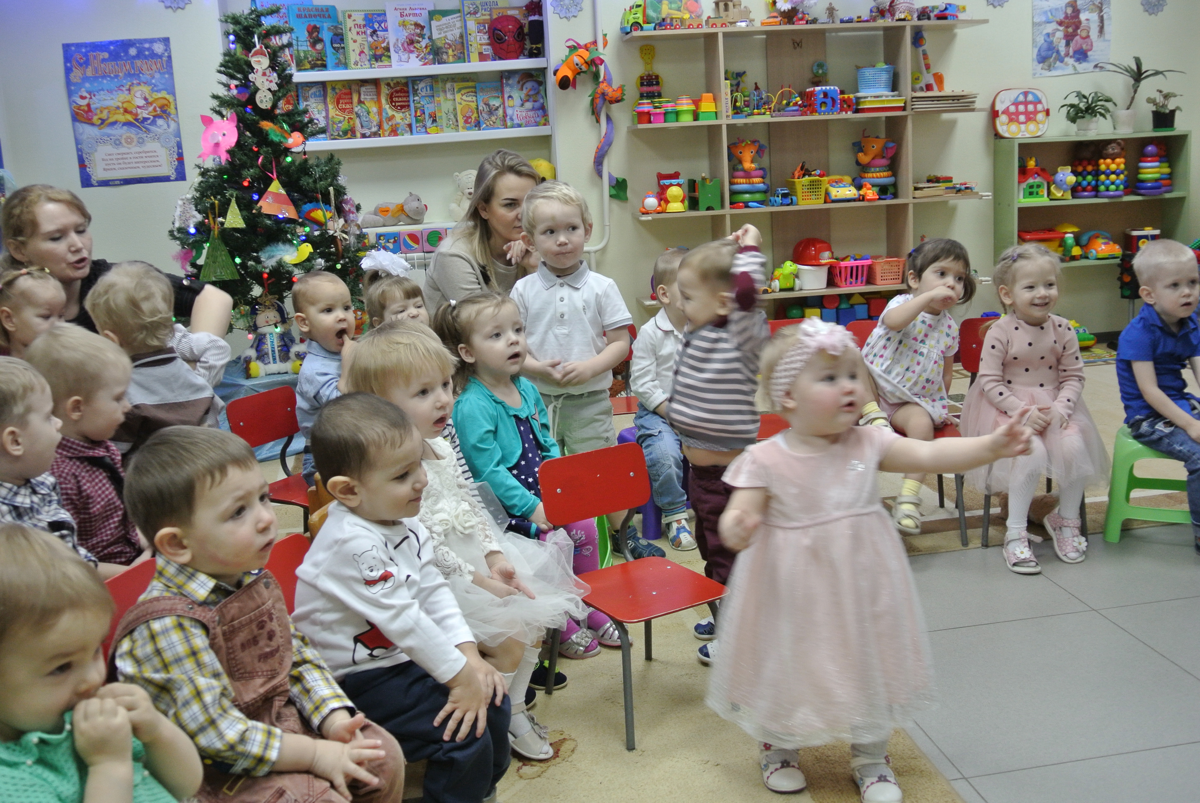 Малыши-дошколята испытывают особую радость от встречи Нового года в дружной компании детишек, воспитателей и нянь в детском саду.