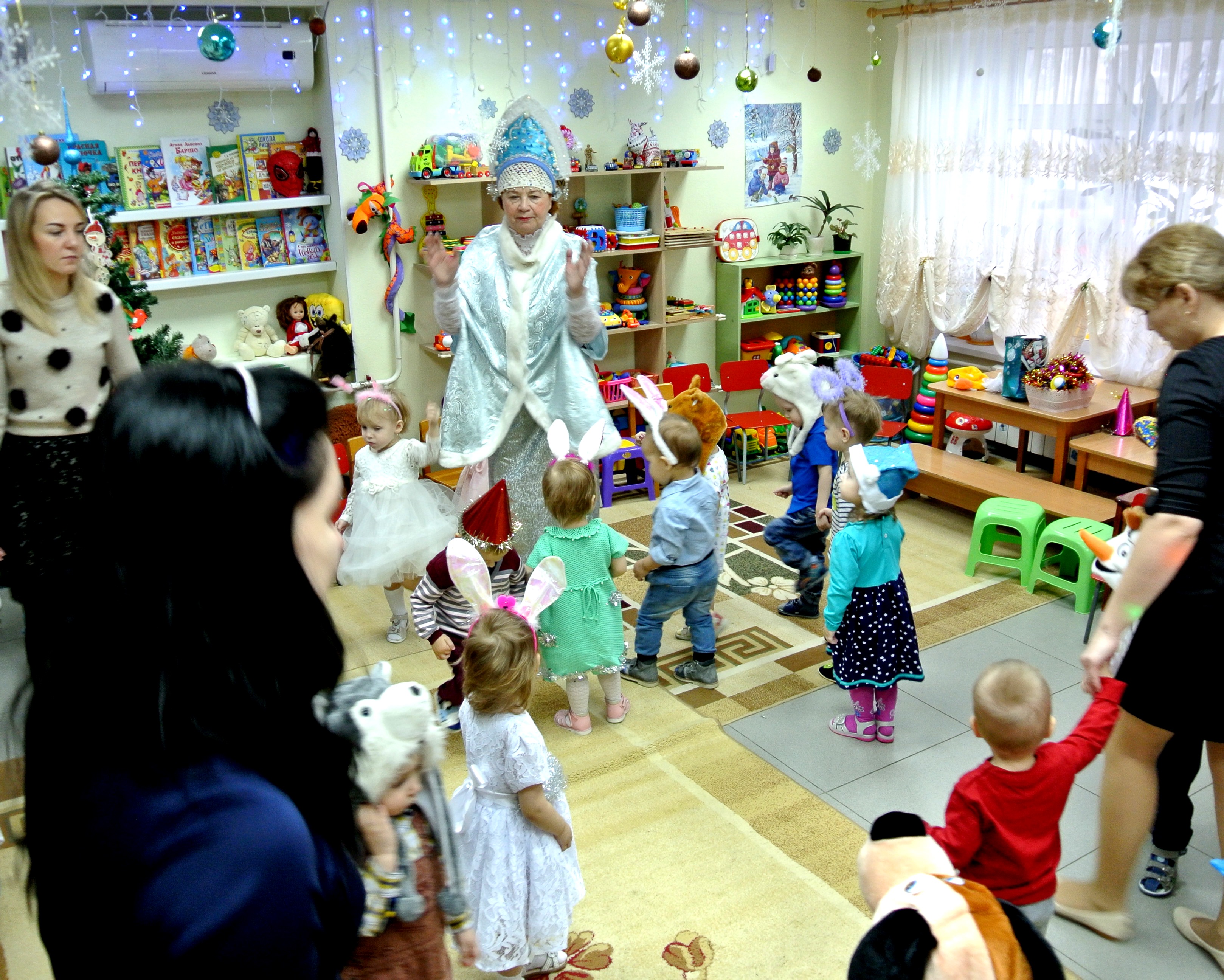 Наш театр завершил новогодний «вояж» по детским садикам города. Атмосферу праздника и волшебства создавали еще до нашего приезда сотрудники детских садов и родители. Украшали снежинками, шариками, мишурой, яркими гирляндами стены и потолки детских садов, наряжали елку в новогодний наряд и деток в праздничные платьишки и костюмчики.