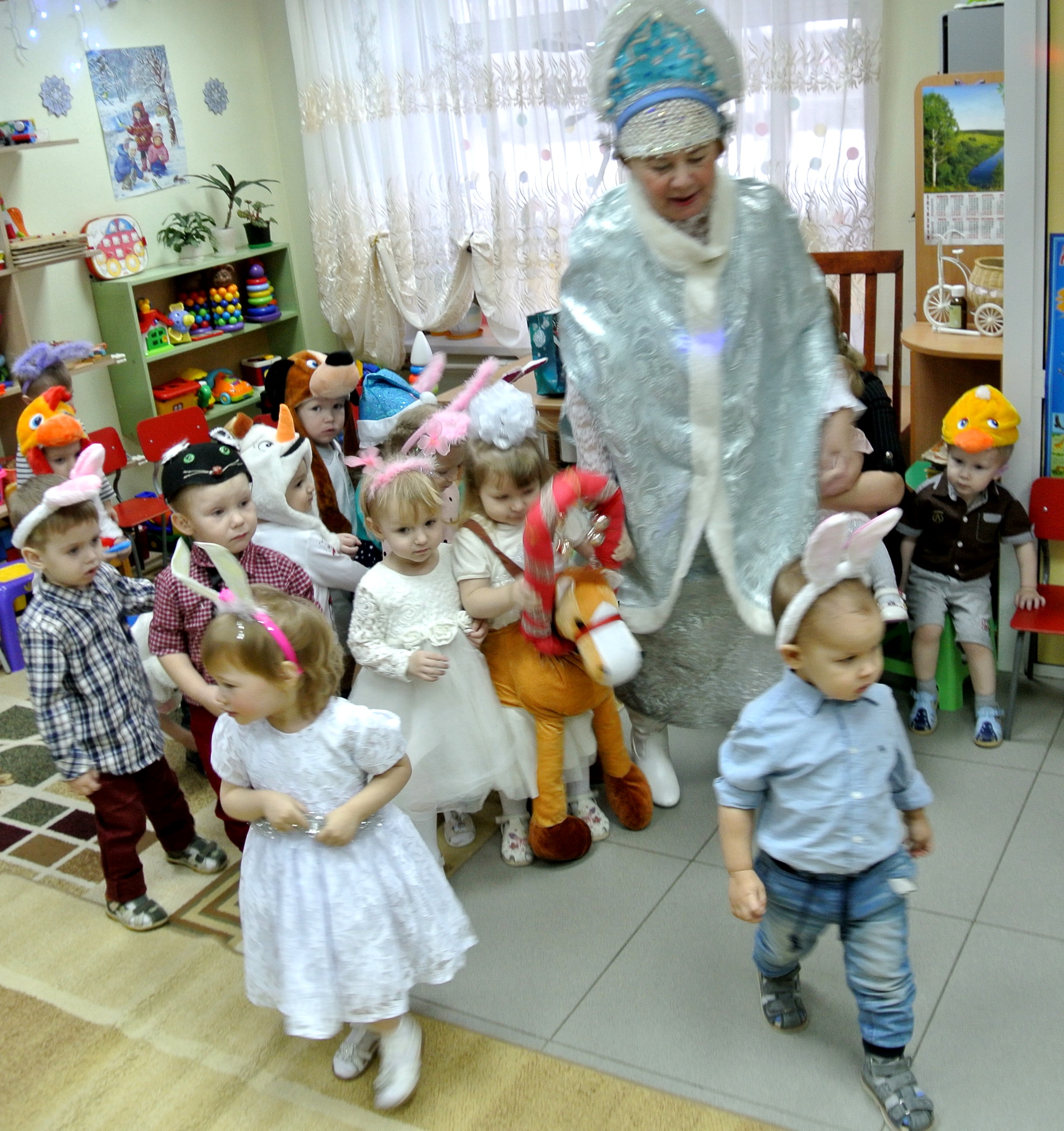 До появления Деда Мороза ребятки играли в новогодние музыкальные игры с Зимой-Метелицей: «Снежки», «Снежный ком», «Лиса и Зайки», водили хороводы.