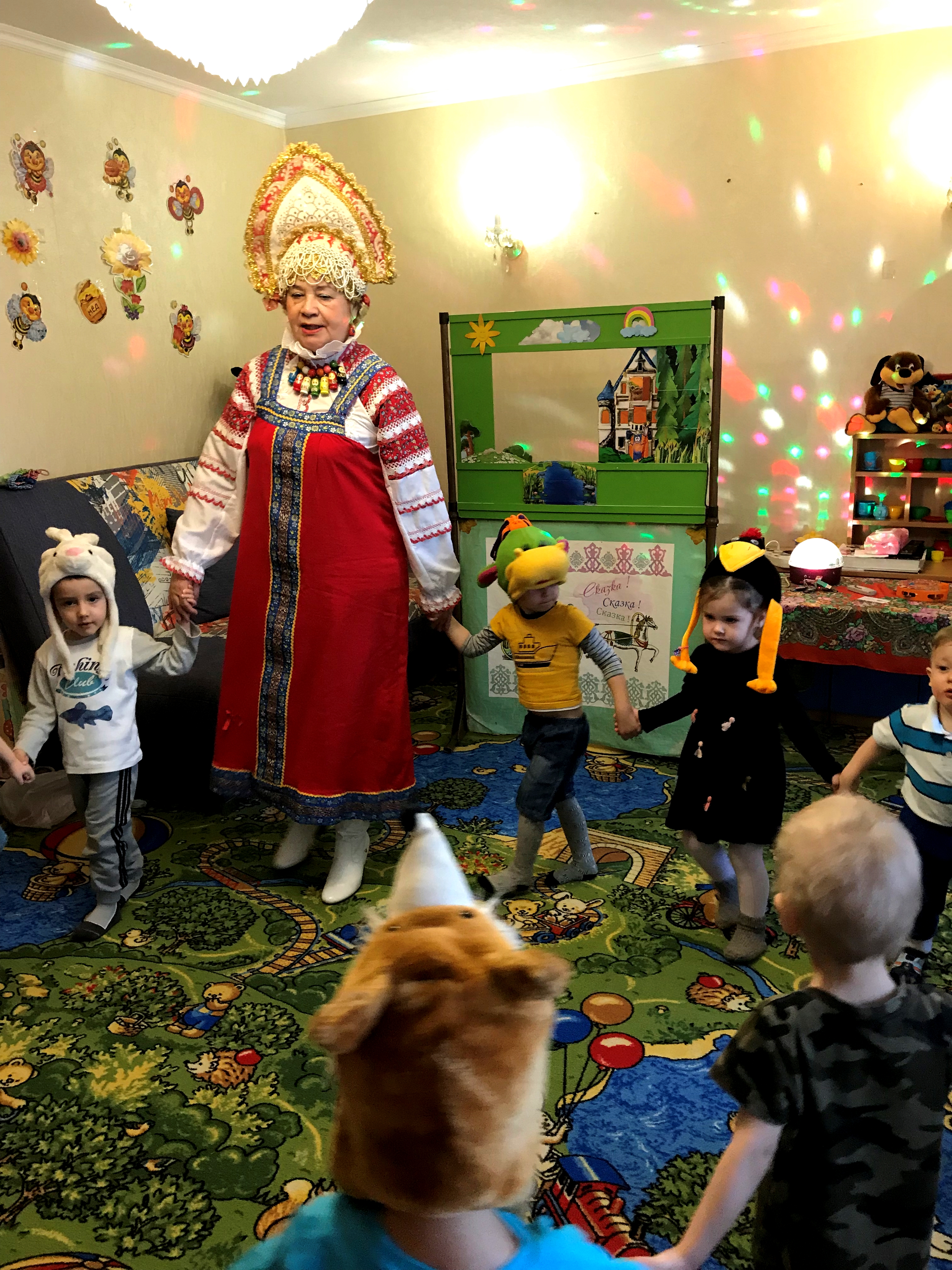23 января мы показали сказку детишкам в детском садике «Аистенок». Ребятки рассказали Марье Искуснице, что чистят зубки по утрам и вечерам. А потом в шапочках-масках героев спектакля: Дракоши, Королевы, КарКарыча, Зайки, Лисы – водили хоровод и показывали движения, которые используются при чистке зубов. А еще дружно «купались в речке».