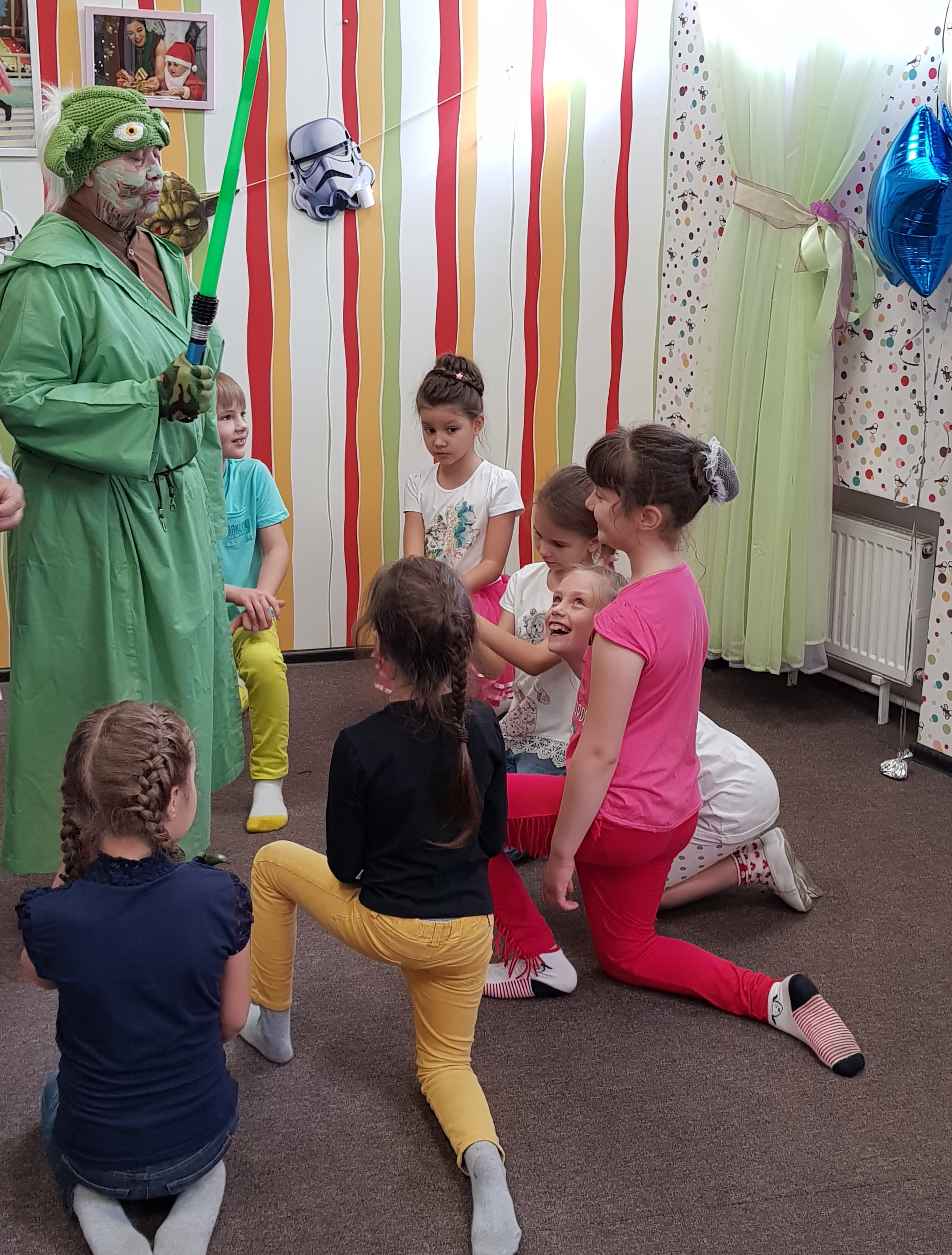 По нашей легенде, Тёмная сторона вновь грозит нарушить равновесие Сил. И теперь судьба нашей Галактики и планеты Земля в руках юных учеников центра подготовки джедаев! В 1 части квеста ребят ждал вихрь космических приключений: командные и личные спецмиссии, различные задания на командную работу, на ловкость, на силу, на эрудицию, на меткость.