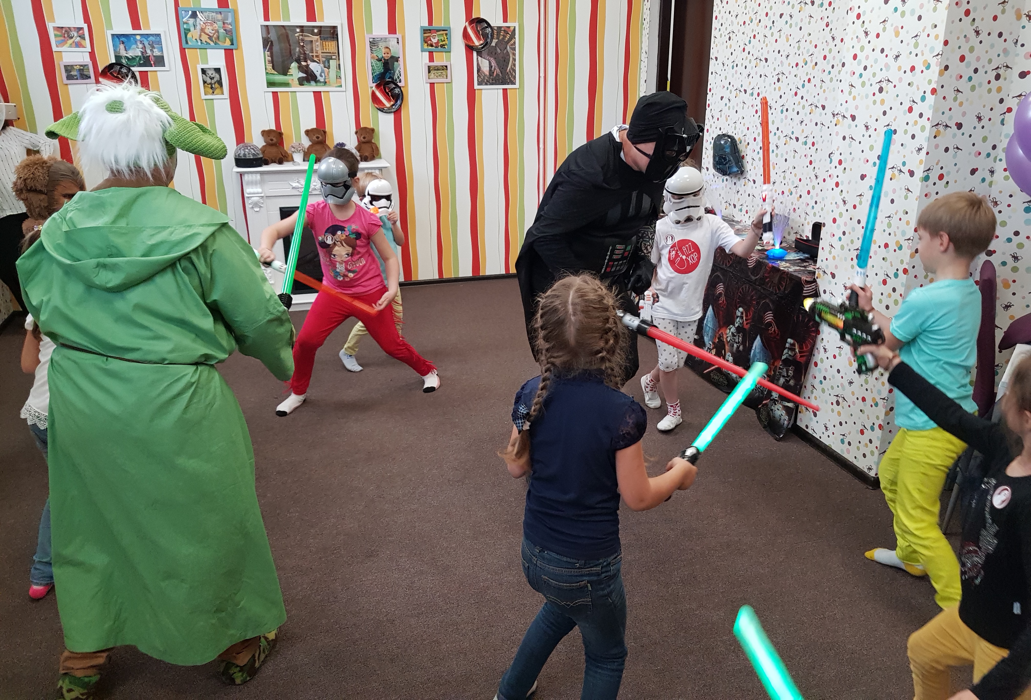 Во 2 части квеста юные «джедаи» получают световые мечи,бластеры и вступают с бой с коварным и сильным врагом Лордом Дартом Вейдером. Благодаря помощи мастера Йоды, джедаи побеждают. Но им еще предстоит обезвредить Звезду – Убийцу. Только именинница знает, как это сделать. Миссия выполнена. Джедаи вознаграждены.
