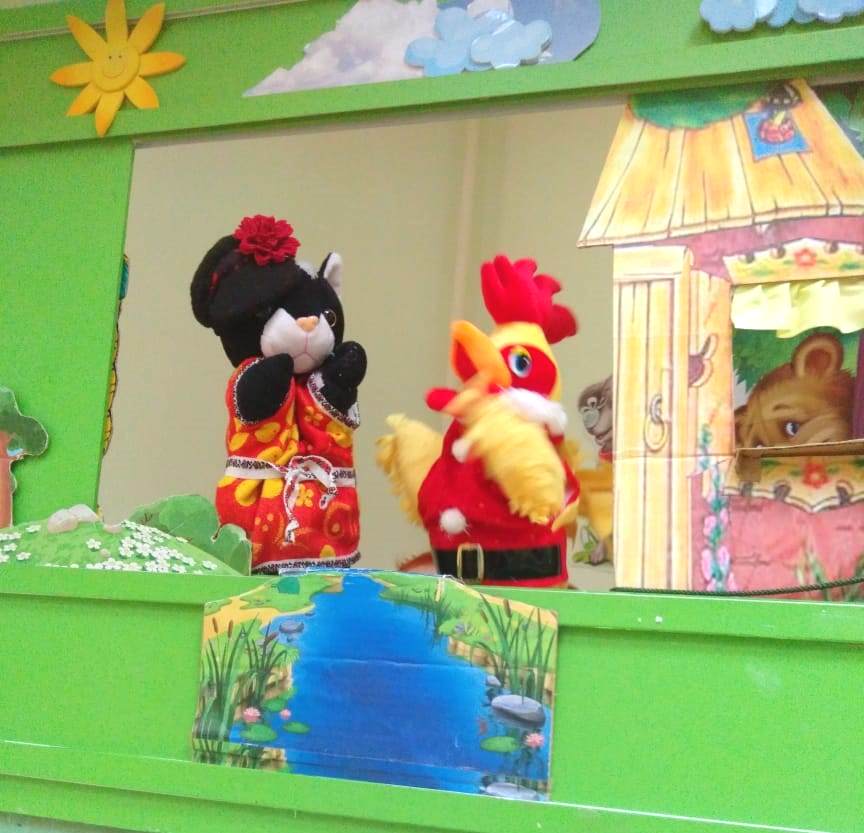 Вот и наш театр продолжает выезжать в детские сады г.Екатеринбурга и показывать сказку «Как Пасха победила зло». О том, как под звуки Благовеста (праздничного колокольного звона) помирились персонажи сказки Лиса, Кот и Петух.