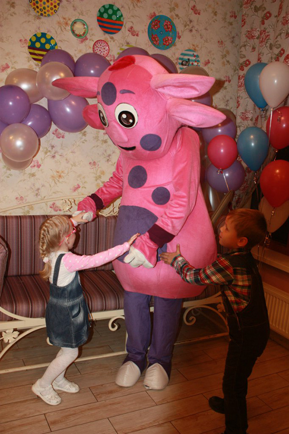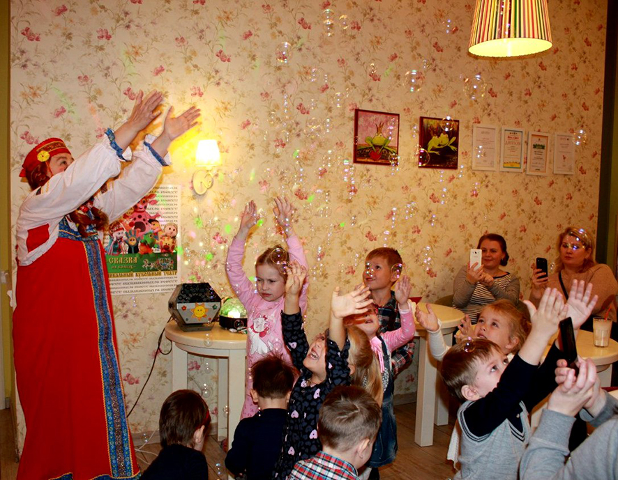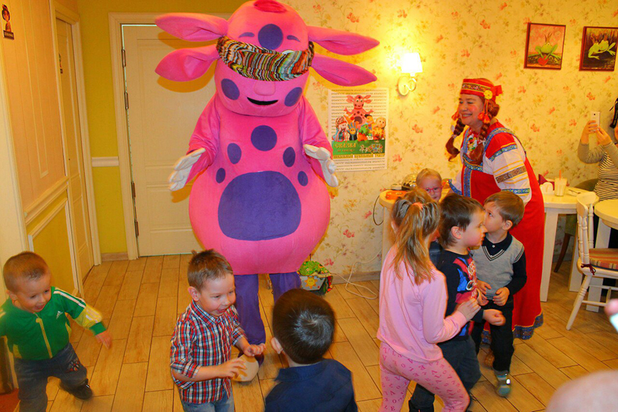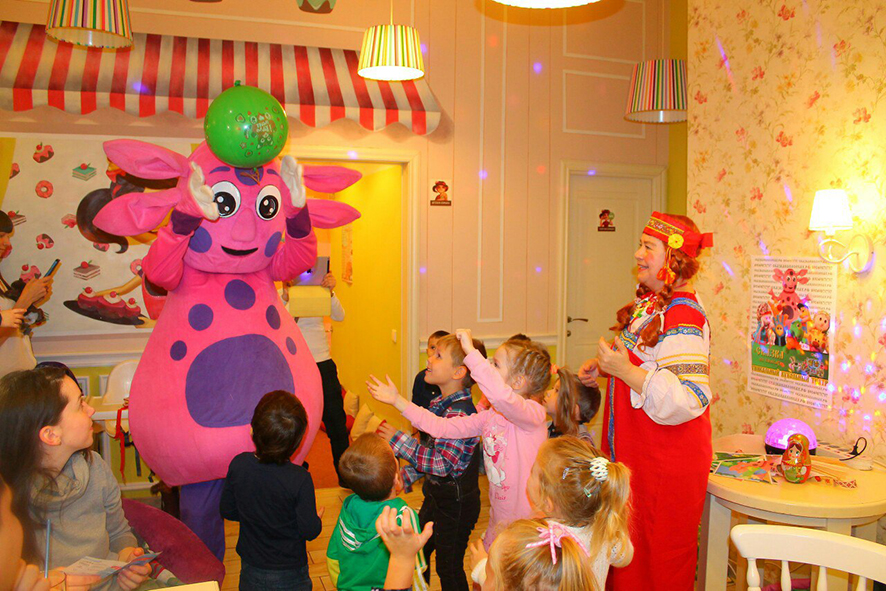 В завершении праздника состоялась фотосессия с Лунтиком, детки и родители могли сфотографироваться с различных масках: дракона, рыцаря, русского богатыря, в кокошнике и других. А потом под динамичную музыку полетели мыльные пузыри.