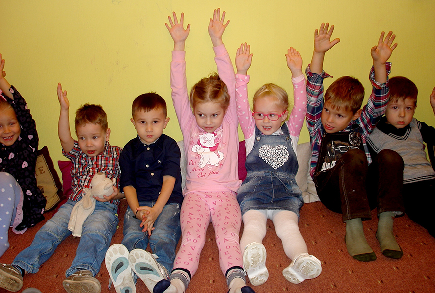 Детишки с удовольствием посмотрели сказку и дружно подняли обе руки, обещая, что обязательно почистят зубы перед сном.