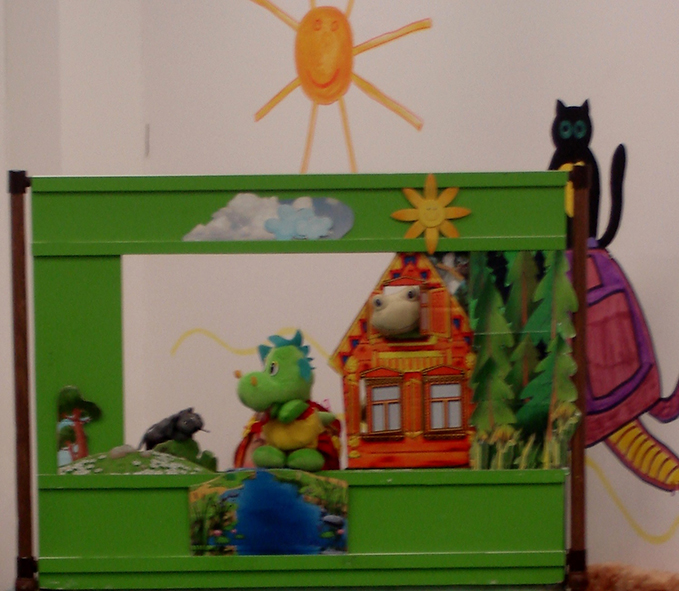 Огромная карусель в форме Осьминога, батут, горка, качающийся на волнах корабль, гостеприимная, доброжелательная обстановка – это детская площадка аттракционов «Веселый осьминог». Именно туда был приглашен театр «Сказка на колесах» для знакомства самых маленьких гостей площадки с нашими сказками. Детки, вместе с мамочками, внимательно наблюдали за героями сказки «Кто спасет теремок?». Несмотря на то, что многие малышки только учатся ходить, они шумели погремушками, бубнами. Ребятки старались помочь Марье Искуснице вызвать из «норки» маленького пушистого «зверька» Евражку, который пришел поиграть с малышами в мячик. А потом, самые смелые, одели шапочки-маски и учились водить хоровод под музыку, и собирать в корзинку овощи-фрукты для зверушек.