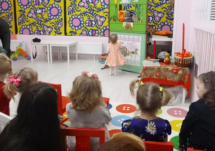 «Сказку на колесах» пригласили на день рождения малышей: 2-х лет – Вики и Маши – 3-х лет. Праздники проходили в разных пространствах: детский клуб раннего развития «Бэби-клуб» и детский сад «Чудо детства», но с одной и той же сказкой: «Колобок».