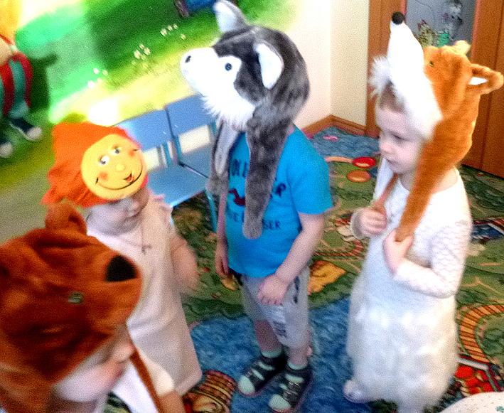 Наш спектакль «Колобок» очень любят детки. Радостно встречают всех персонажей, особенно, хитрую вкрадчивую Лису. Некоторые малыши, правда, иногда, побаиваются Медведя или Волка.